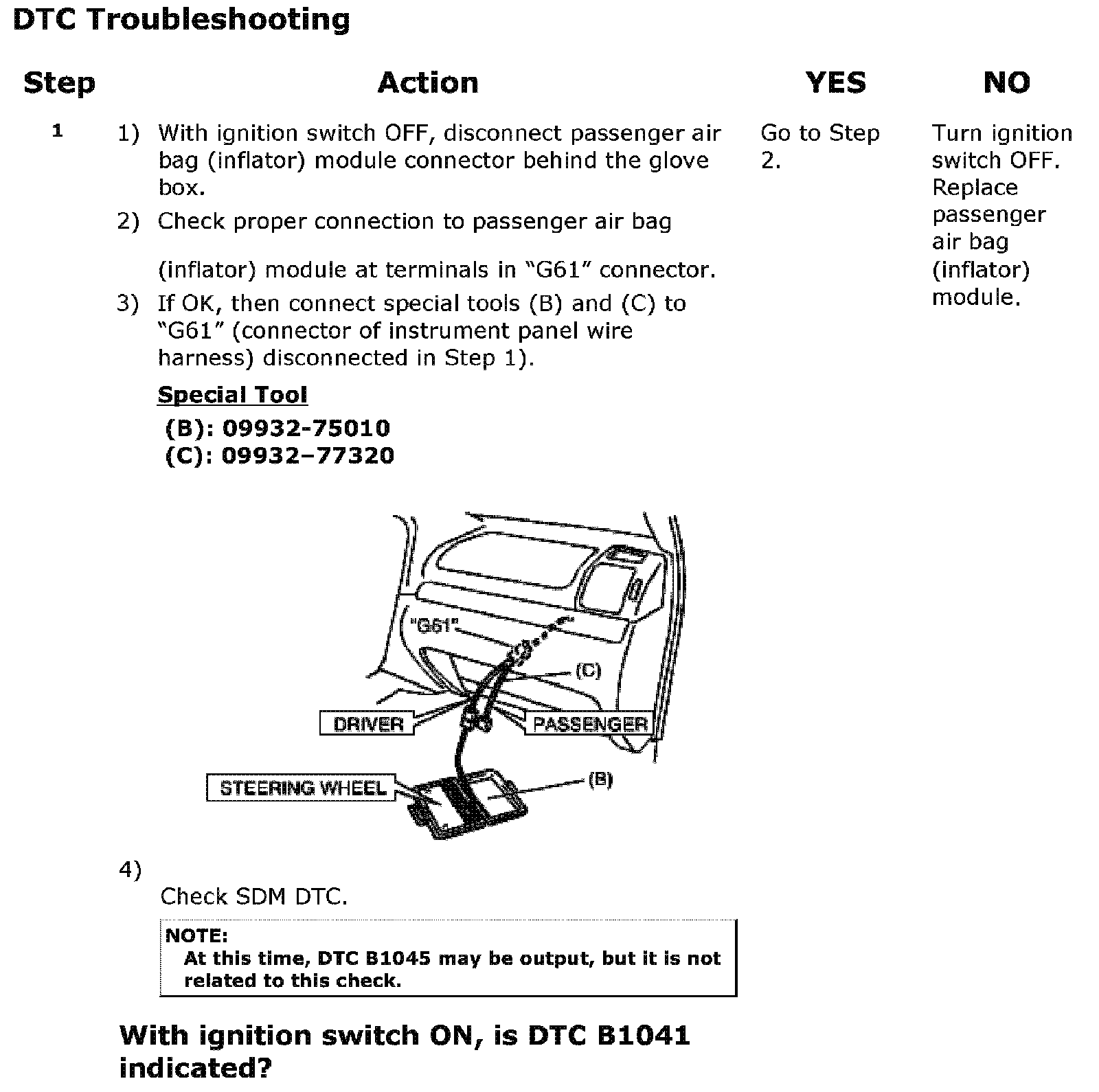 DTC B1041 (No. 1041): Passenger Air Bag (1st stage) Initiator Circuit Resistance HighWiring Diagram: