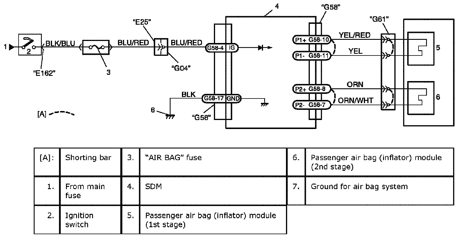 Step 2: Check passenger air bag (inflator) module (2nd stage) initiator circuit.
