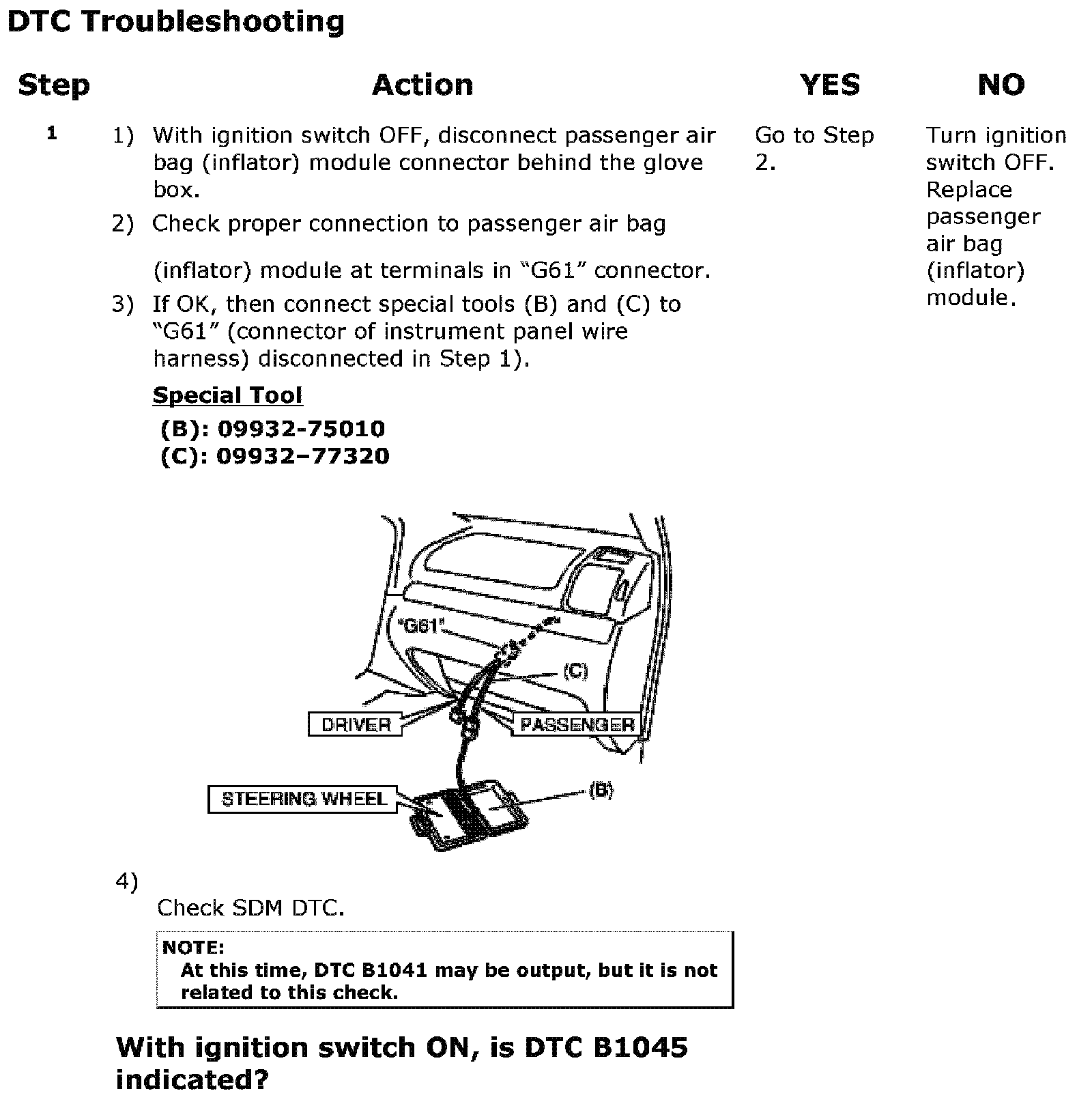 DTC B1045 (No. 1045): Passenger Air Bag (2nd stage) Initiator Circuit Resistance HighWiring Diagram:
