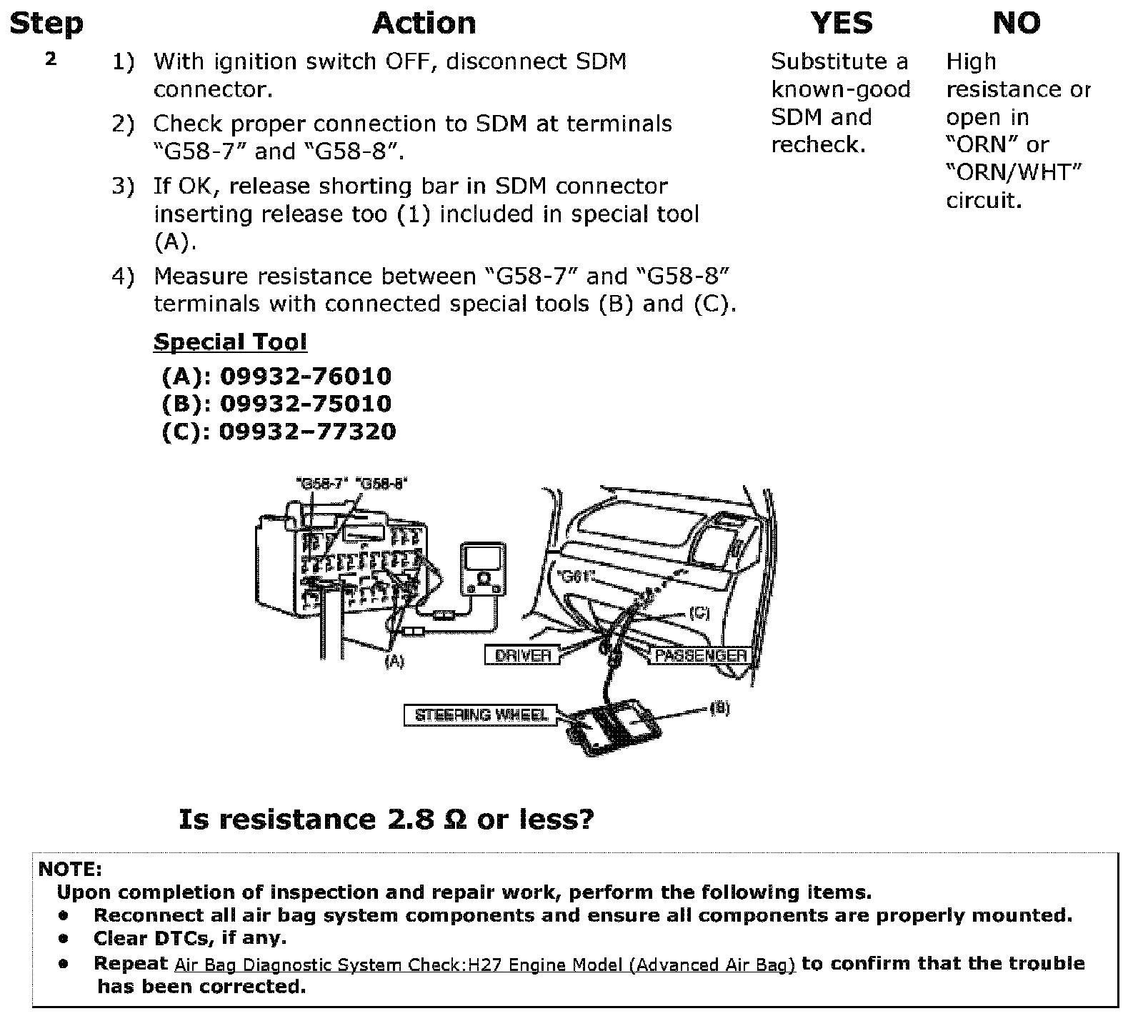 - When a check for proper connection is required, refer to Inspection of Intermittent and Poor Connections:H27 Engine Model (Advanced Air Bag). Intermittents and Poor Connections