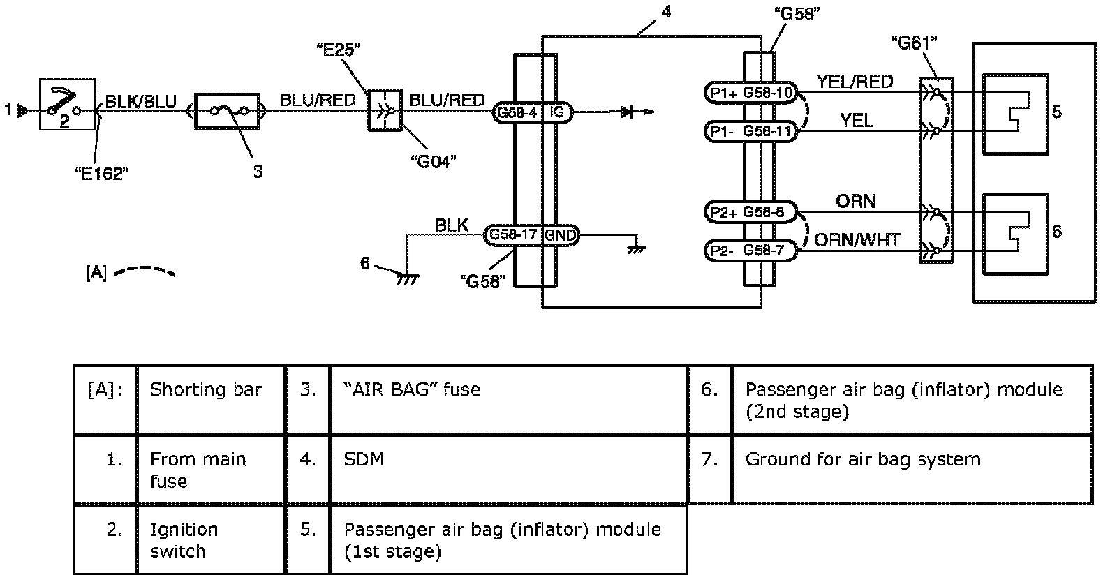 Step 2: Check passenger air bag (inflator) module (2nd stage) initiator circuit.