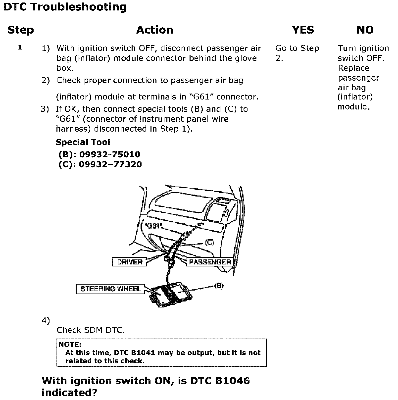 DTC B1046 (No. 1046): Passenger Air Bag (2nd stage) Initiator Circuit Resistance LowWiring Diagram: