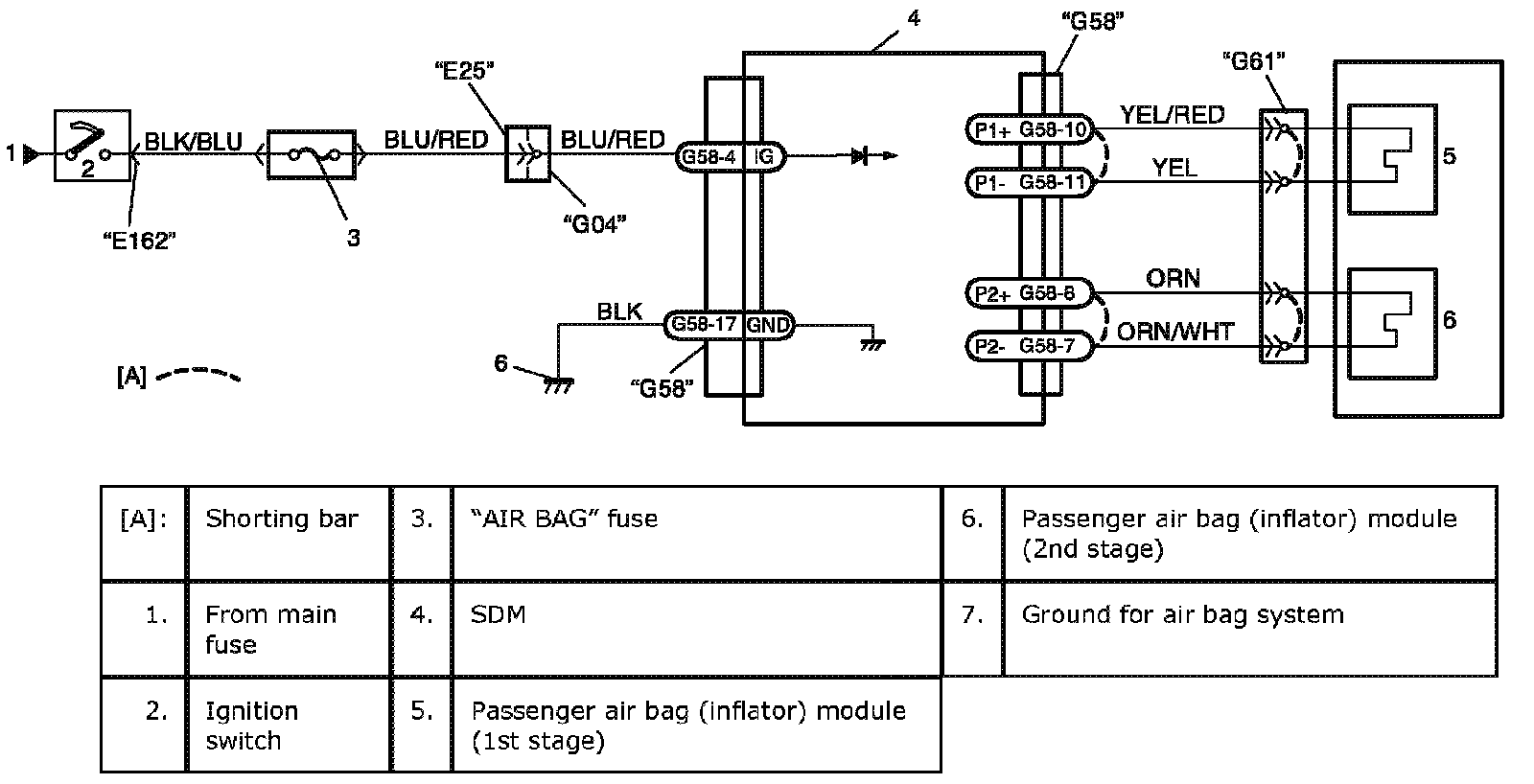 Step 2: Check passenger air bag (inflator) module (2nd stage) initiator circuit.