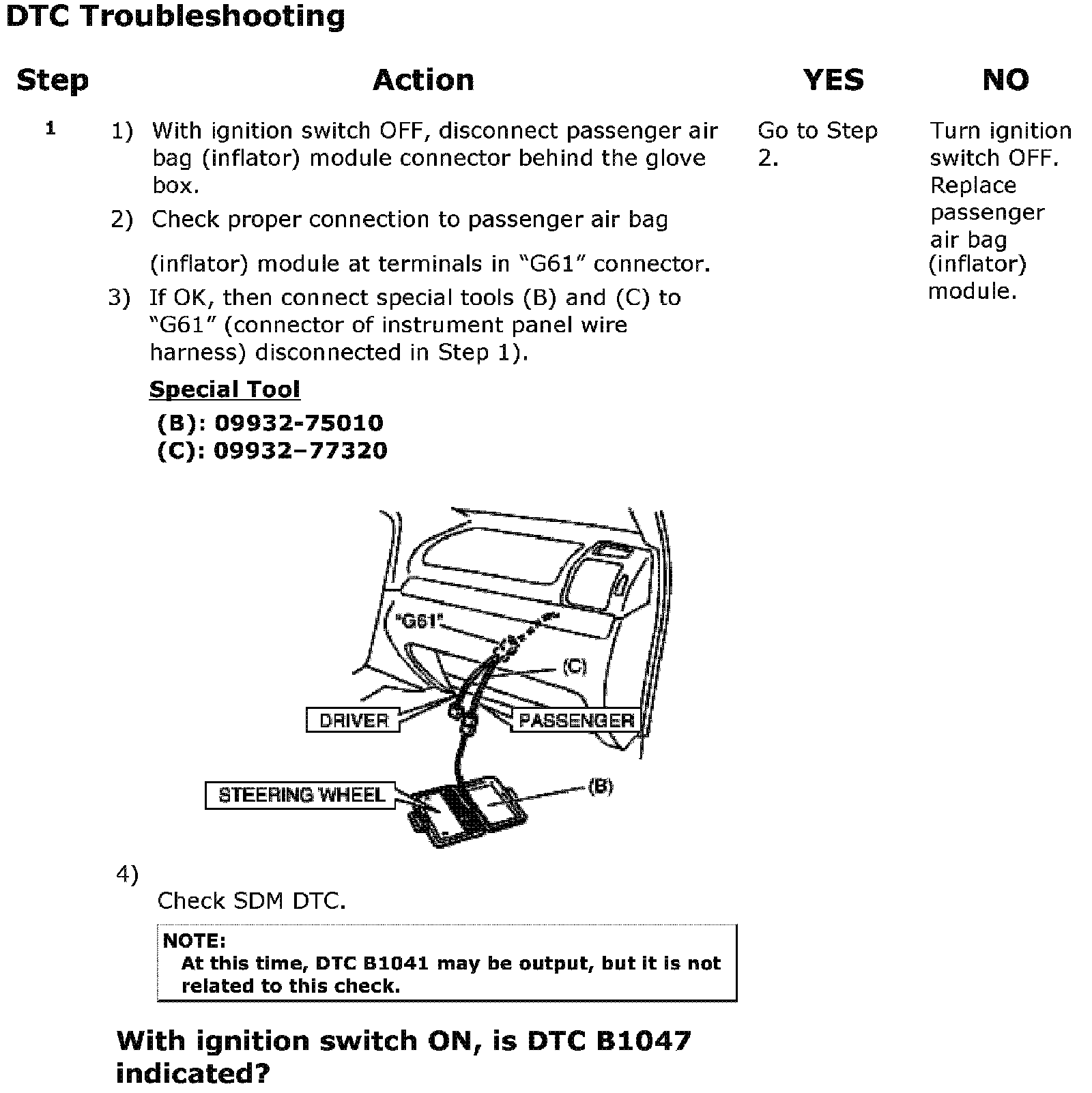 DTC B1047 (No. 1047): Passenger Air Bag (2nd Stage) Initiator Circuit Short to GroundWiring Diagram: