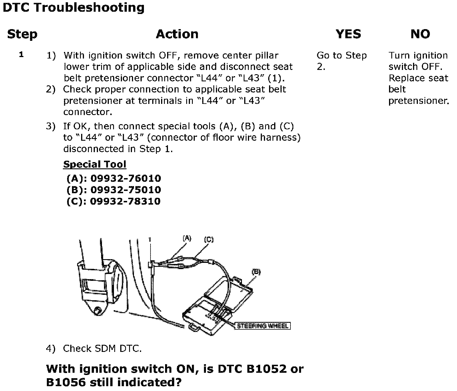 Step 1: Check if malfunction is in seat belt pretensioner.
