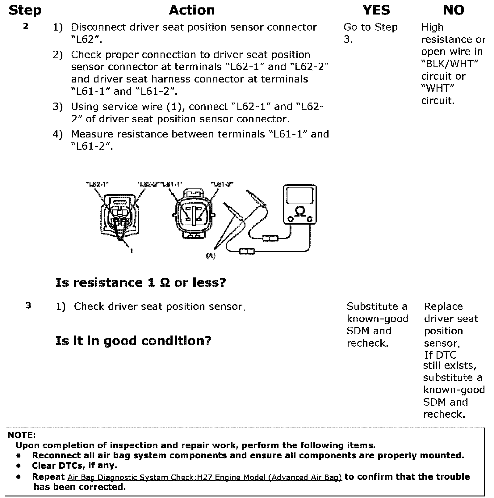 Step 3: Check if malfunction is in driver seat position sensor.