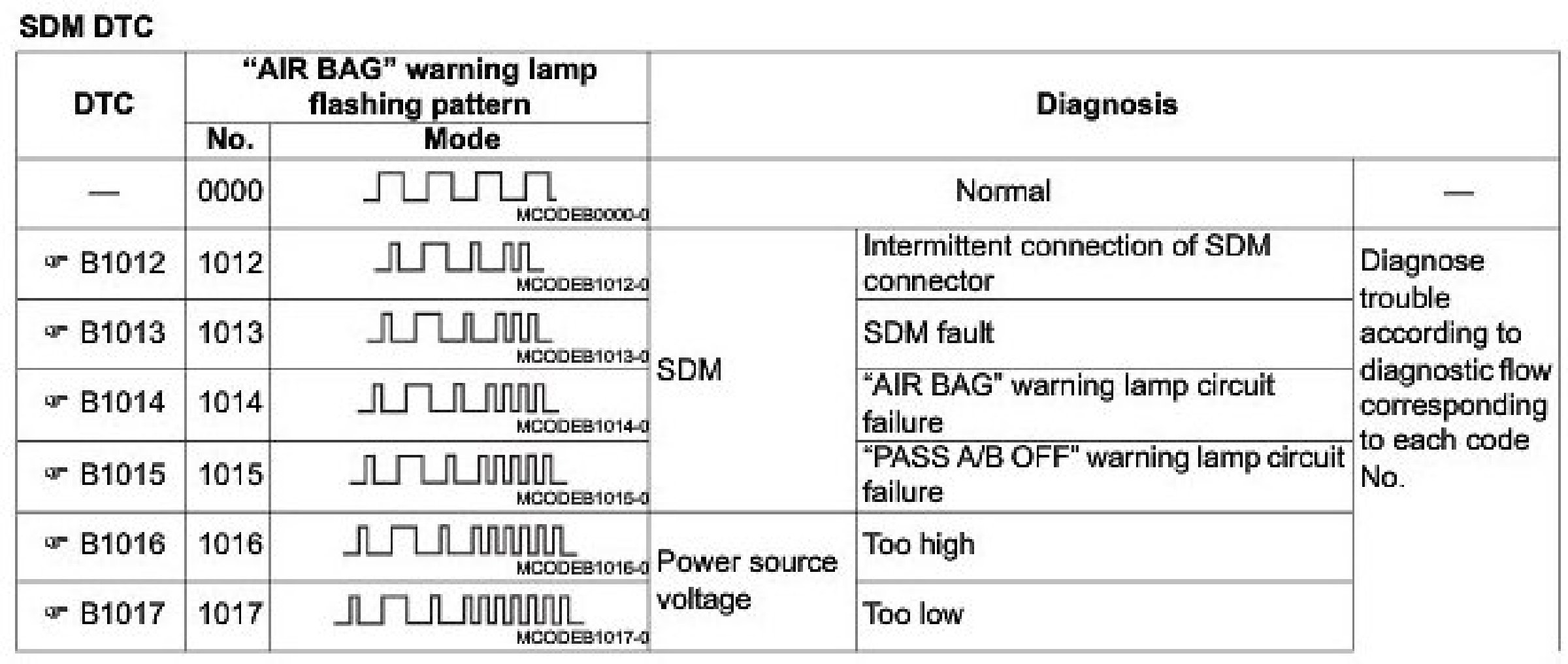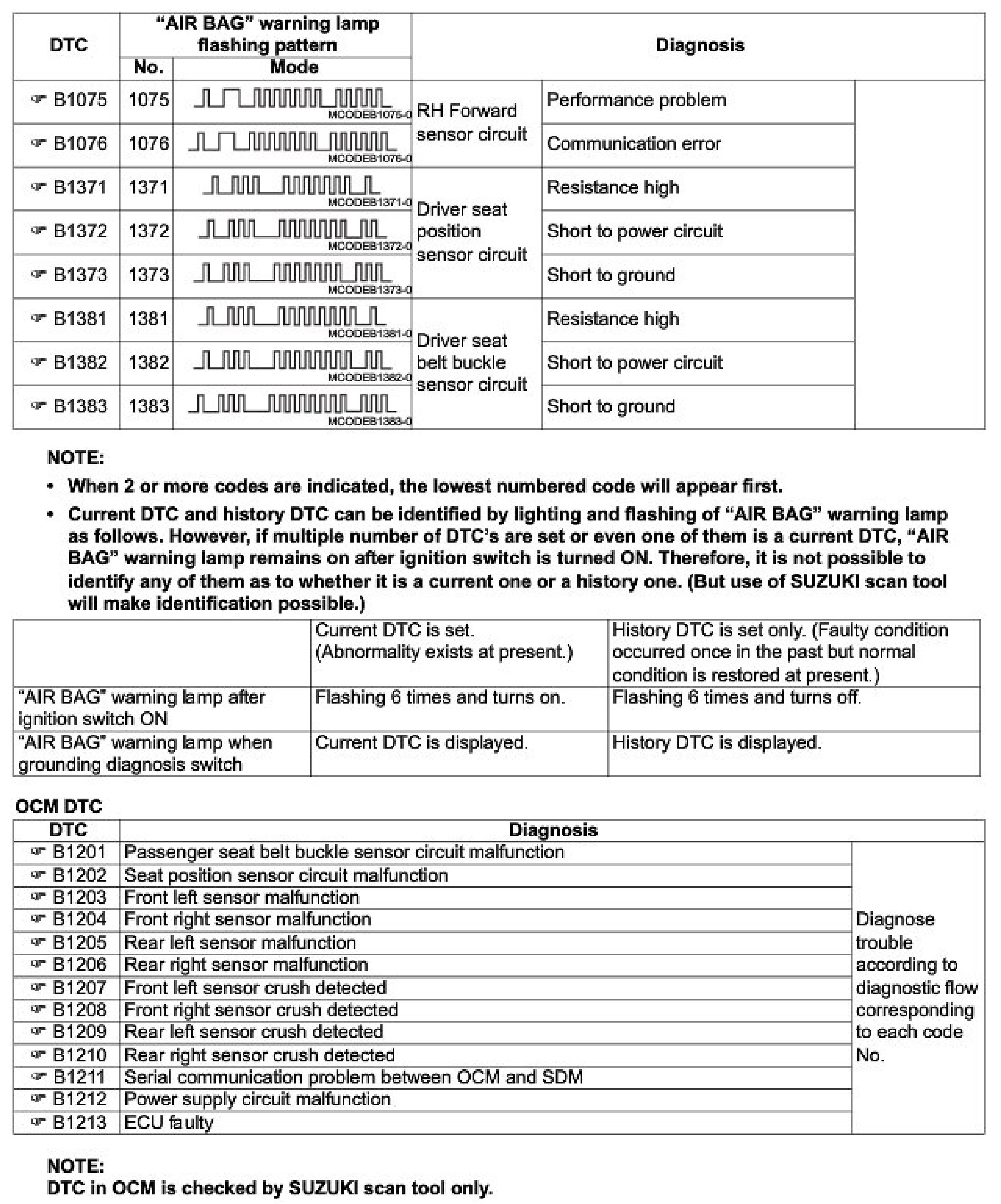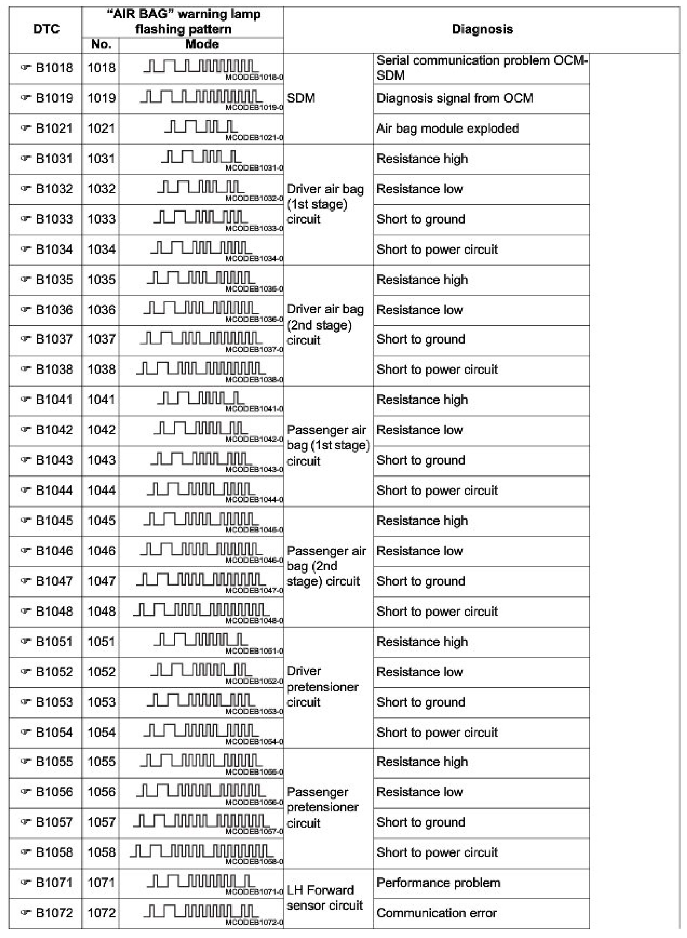 B Codes - Air Bag System