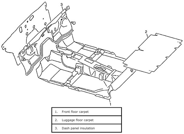 Front Floor Carpet Removal and Installation For H25 Engine ModelFront Floor Carpet Components For H25 Engine Model: