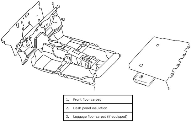 Front Floor Carpet Removal and Installation For H27 Engine ModelFront Floor Carpet Components For H27 Engine Model: