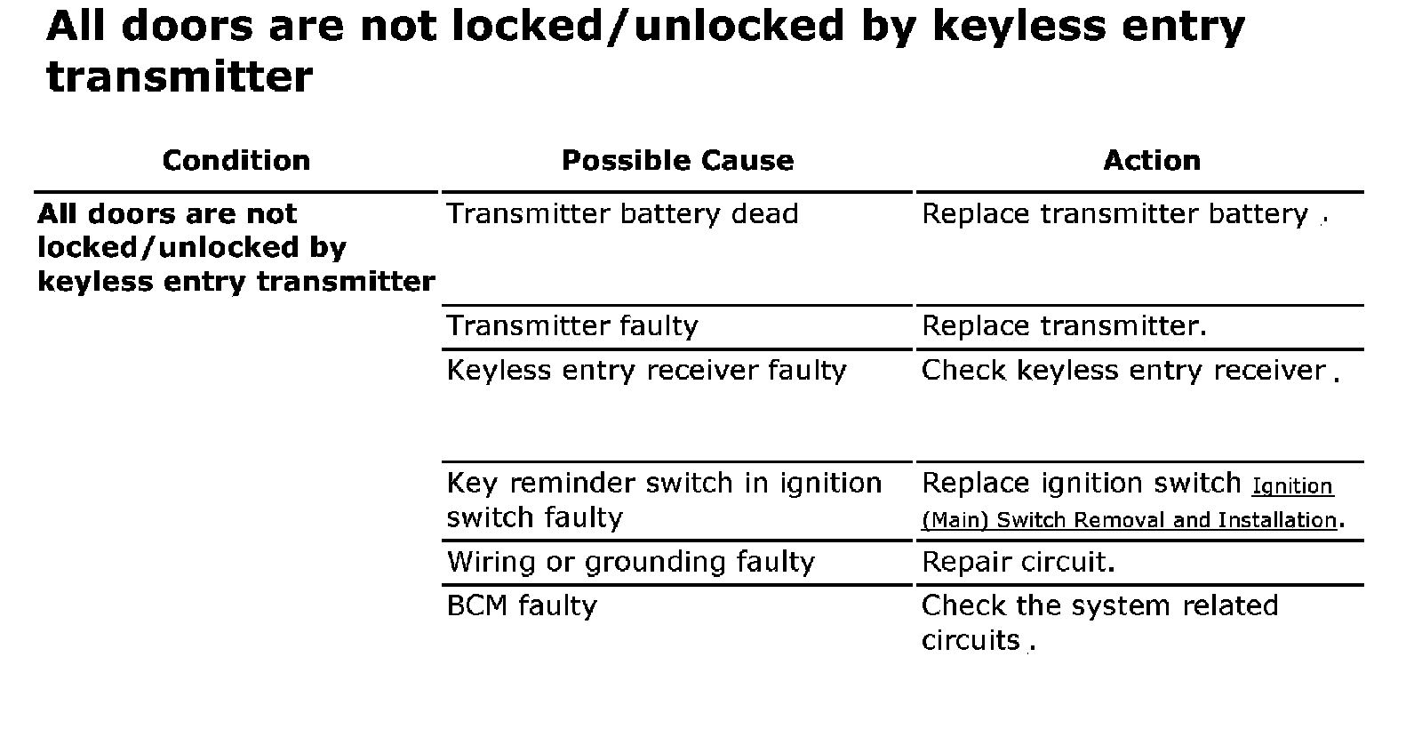 All Doors Are Not Locked/Unlocked By Keyless Entry Transmitter