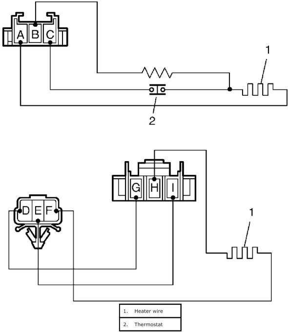 3. Check for continuity between terminals as shown below. If no continuity, replace faulty seat cushion and/or seat back including seat heater.