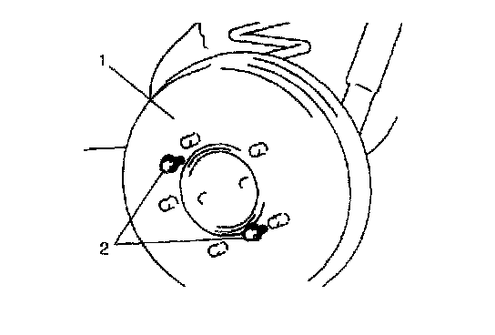 5. Remove brake drum (1) by using 8 mm bolts (2) (2 pcs).