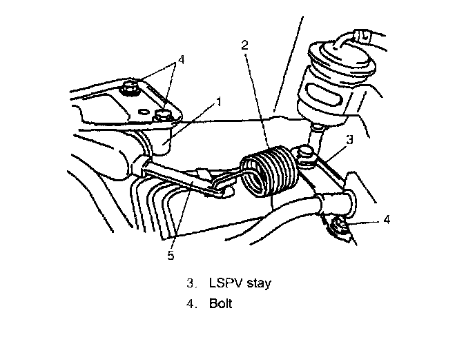 4. Remove LSPV assembly (1) with spring (2) from vehicle body.
