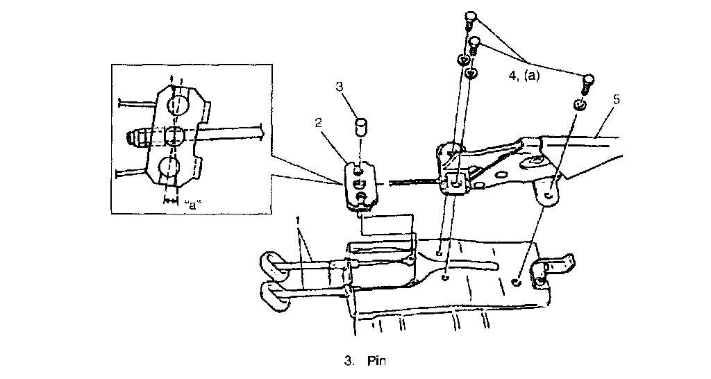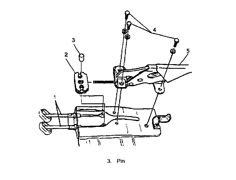 6. Remove parking brake lever bolts (4) and then remove parking brake lever assembly (5) from equalizer (2).