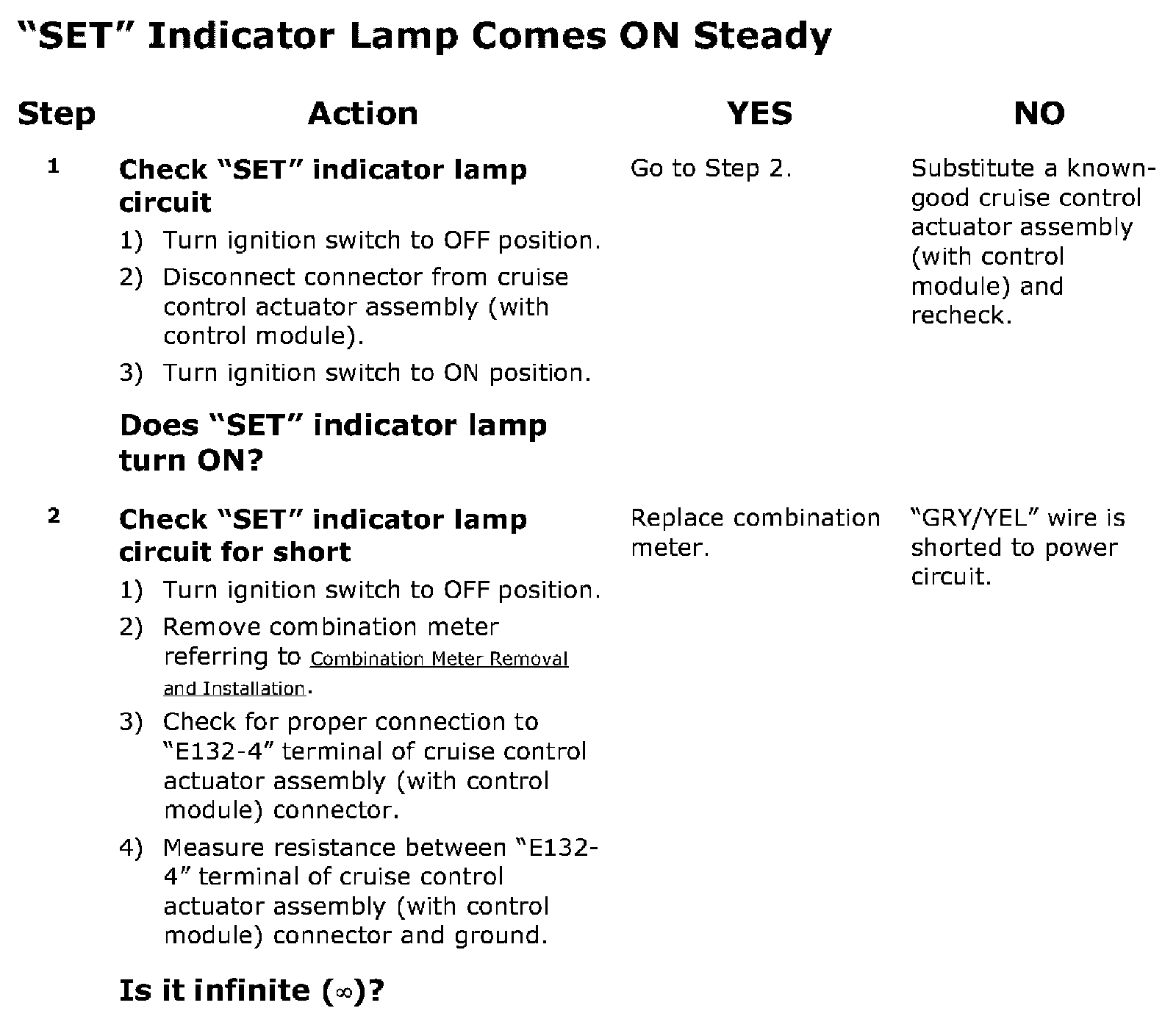 SET Indicator Lamp Comes ON Steady