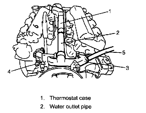 8. Remove water outlet pipe (2) from thermostat case (1).