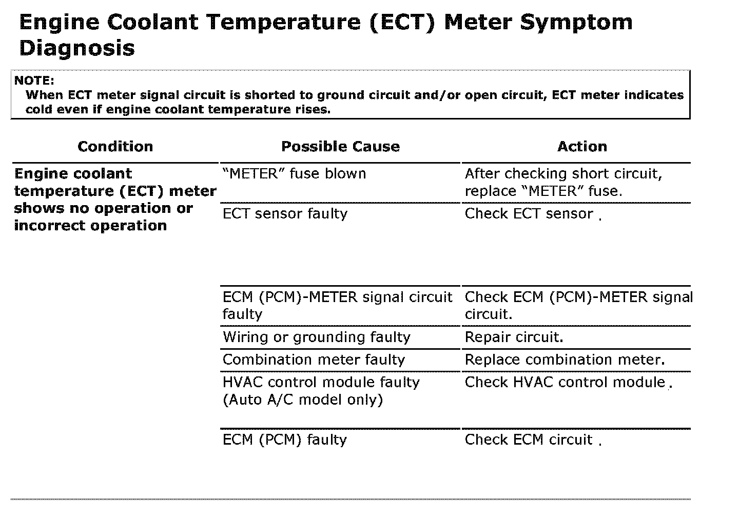 Engine Coolant Temperature (ECT) Meter Symptom Diagnosis: