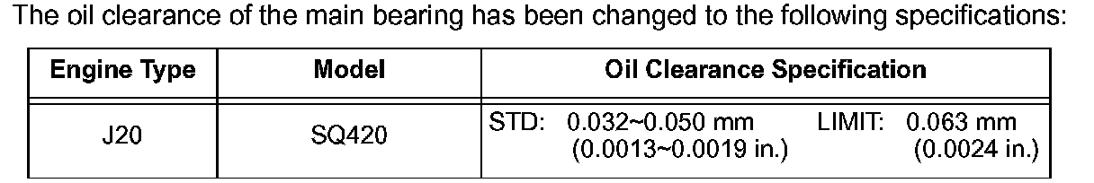 Oil clearance of the main bearings has been modified.