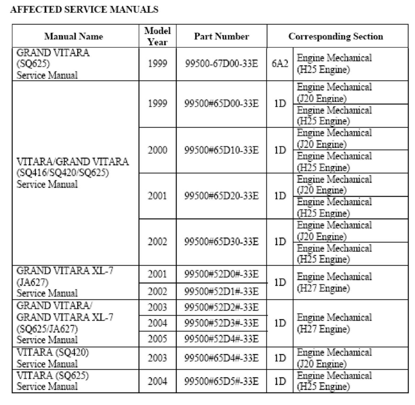 VITARA (SQ420/SQ625L), GRAND VITARA (SQ625W) AND XL-7 (JA627)