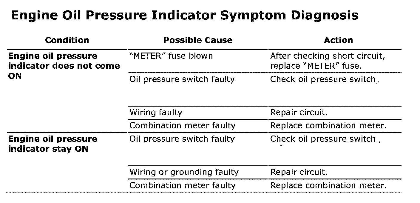 Engine Oil Pressure Indicator Symptom Diagnosis: