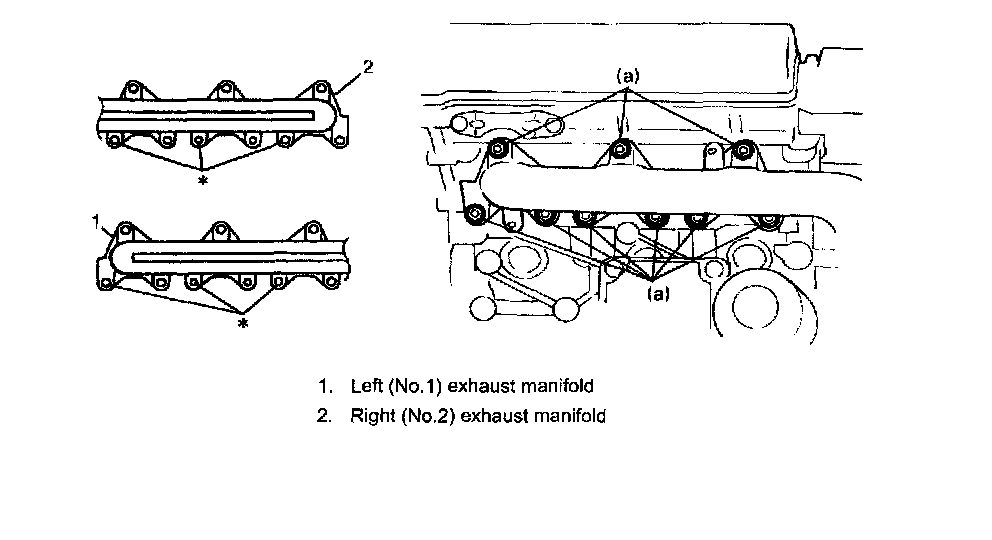 1. Install new manifold gaskets to cylinder heads and No. 1 pipe gasket to exhaust No. 1 pipe.