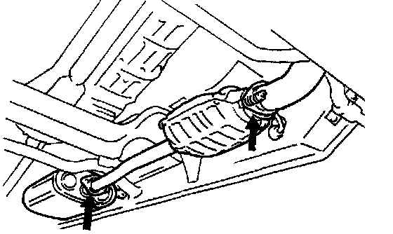 ^ Make sure that exhaust system components have enough clearance from underbody to avoid overheating and possible damage to passenger compartment carpet.
