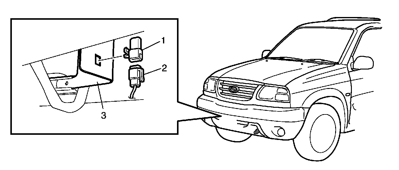 2. Remove outside air temperature sensor (1) from 4WD air pump assembly bracket (3).