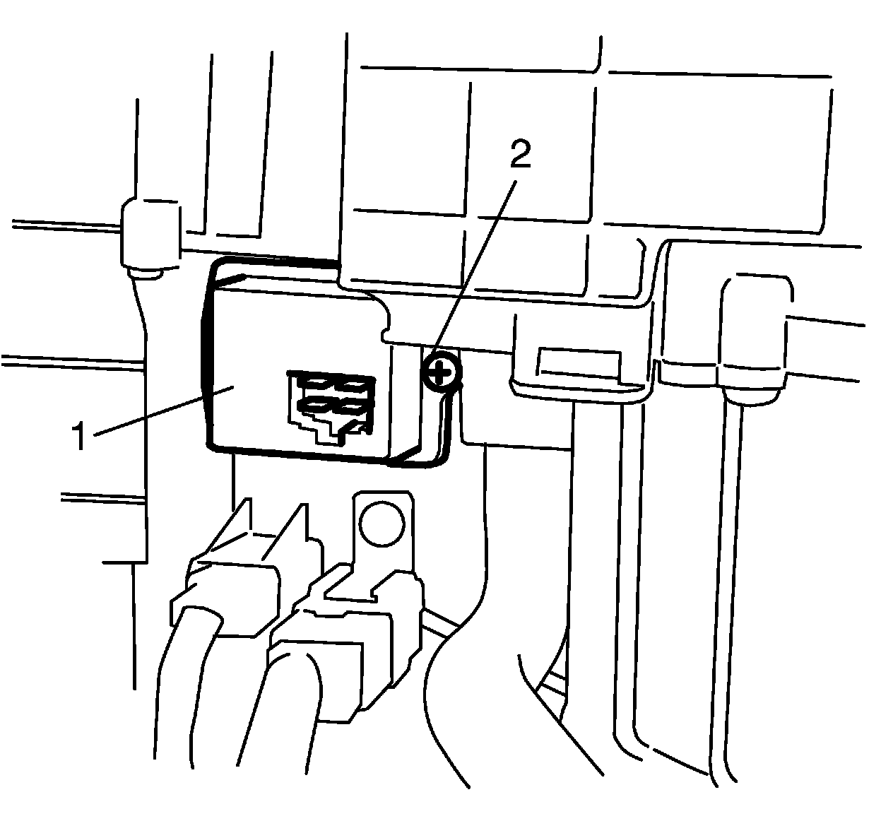 7. Remove blower motor controller (1) by loosening its fastening screw (2).