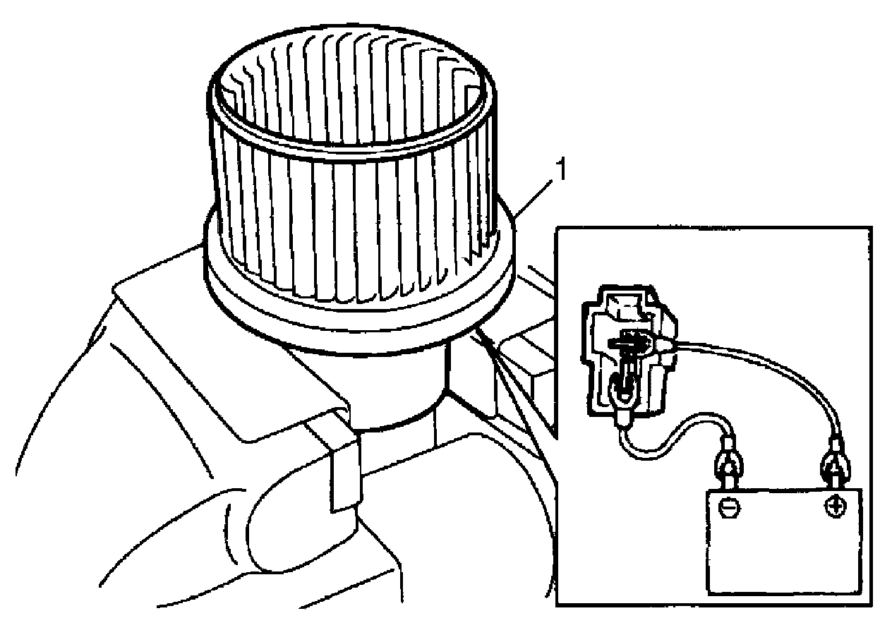 b. Connect battery to rear blower motor assembly (1) as shown.