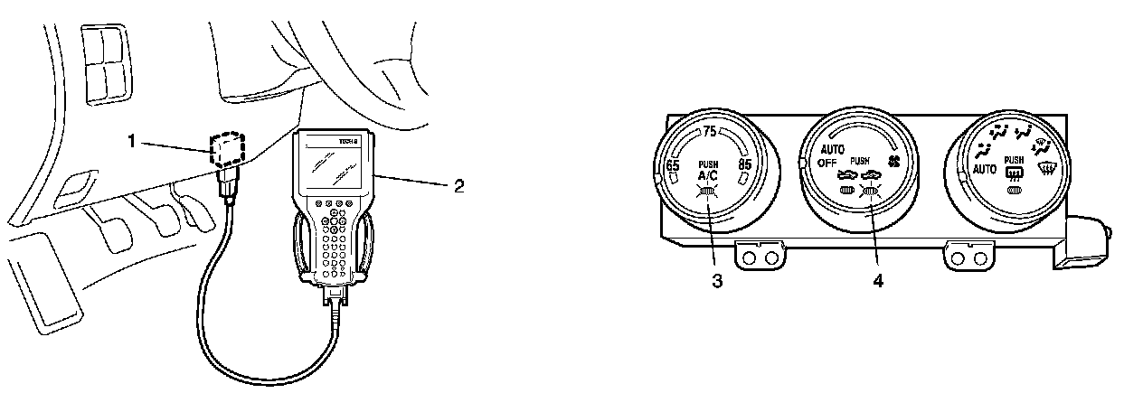 On-Board Diagnostic System DescriptionHVAC control module detects malfunction, which may occur in the following area. When HVAC control module detects any malfunction, the A/C indicator lamp (3) flashes on and off for 15 seconds after turning ignition switch to ON position.