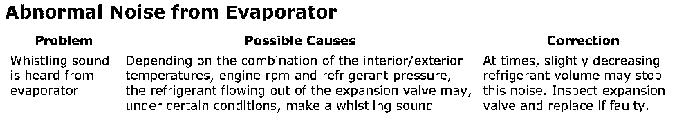 Abnormal Noise Form Evaporator: