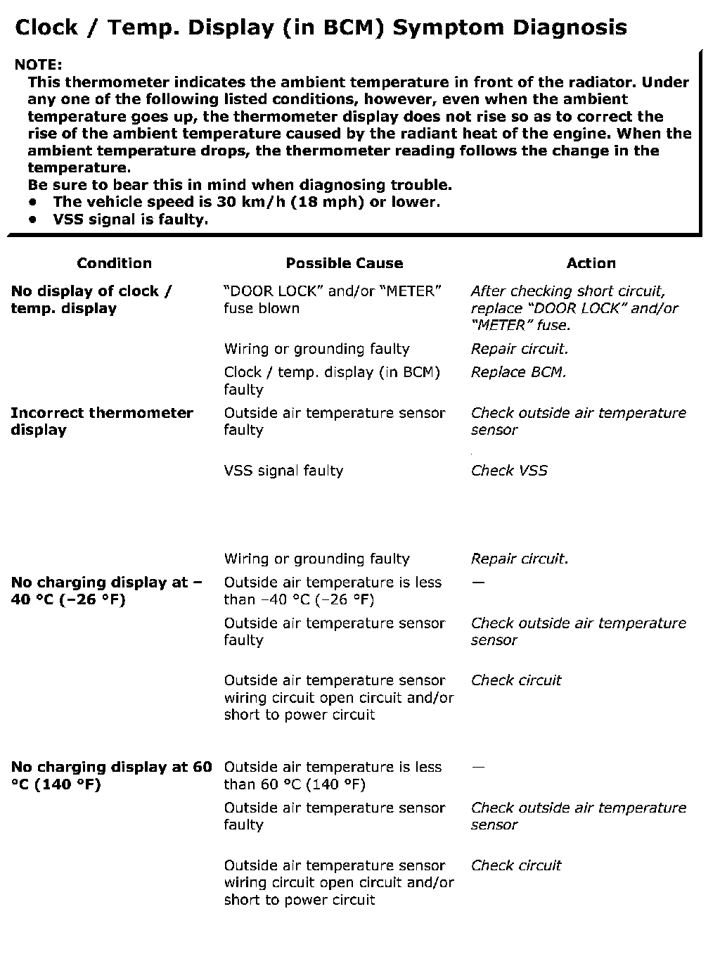 Clock/Temp. Display (In BCM) Symptom Diagnosis: