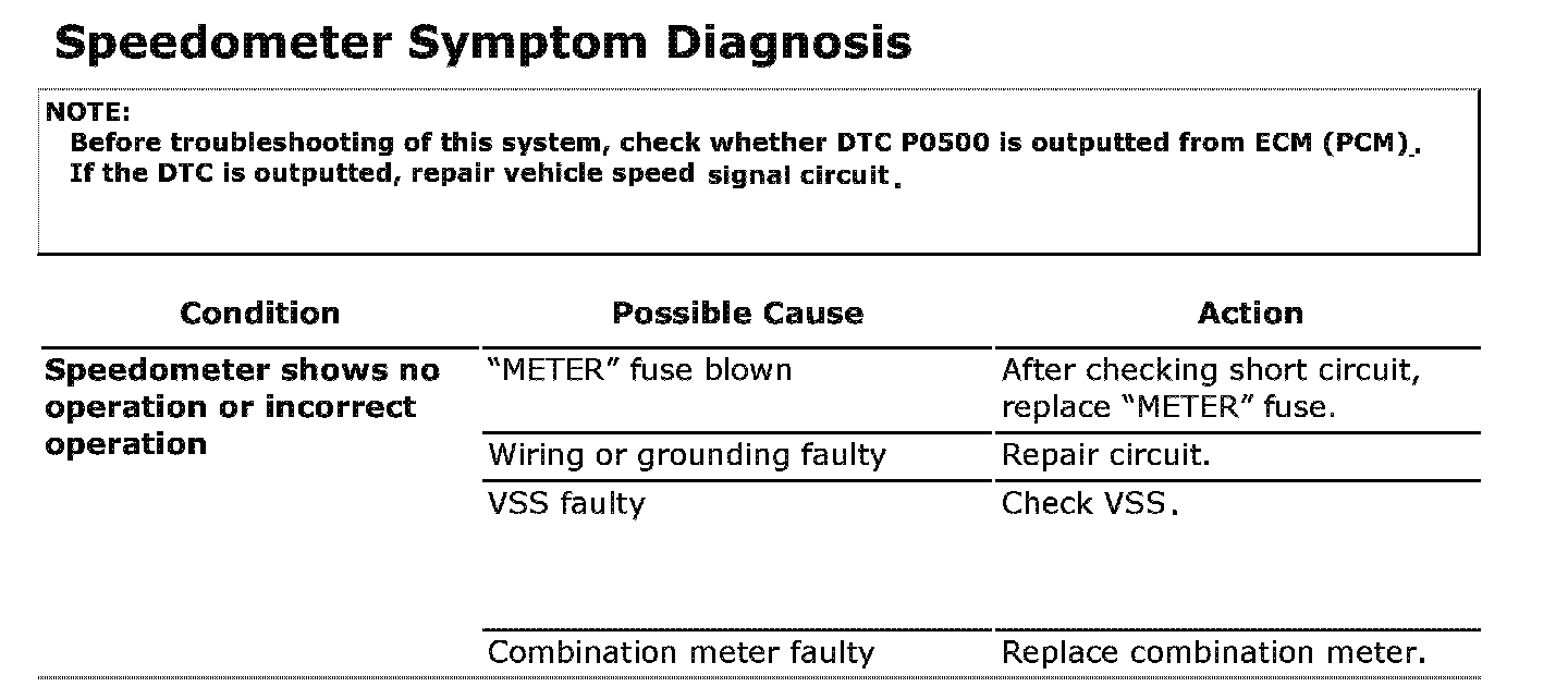 Speedometer Symptom Diagnosis: