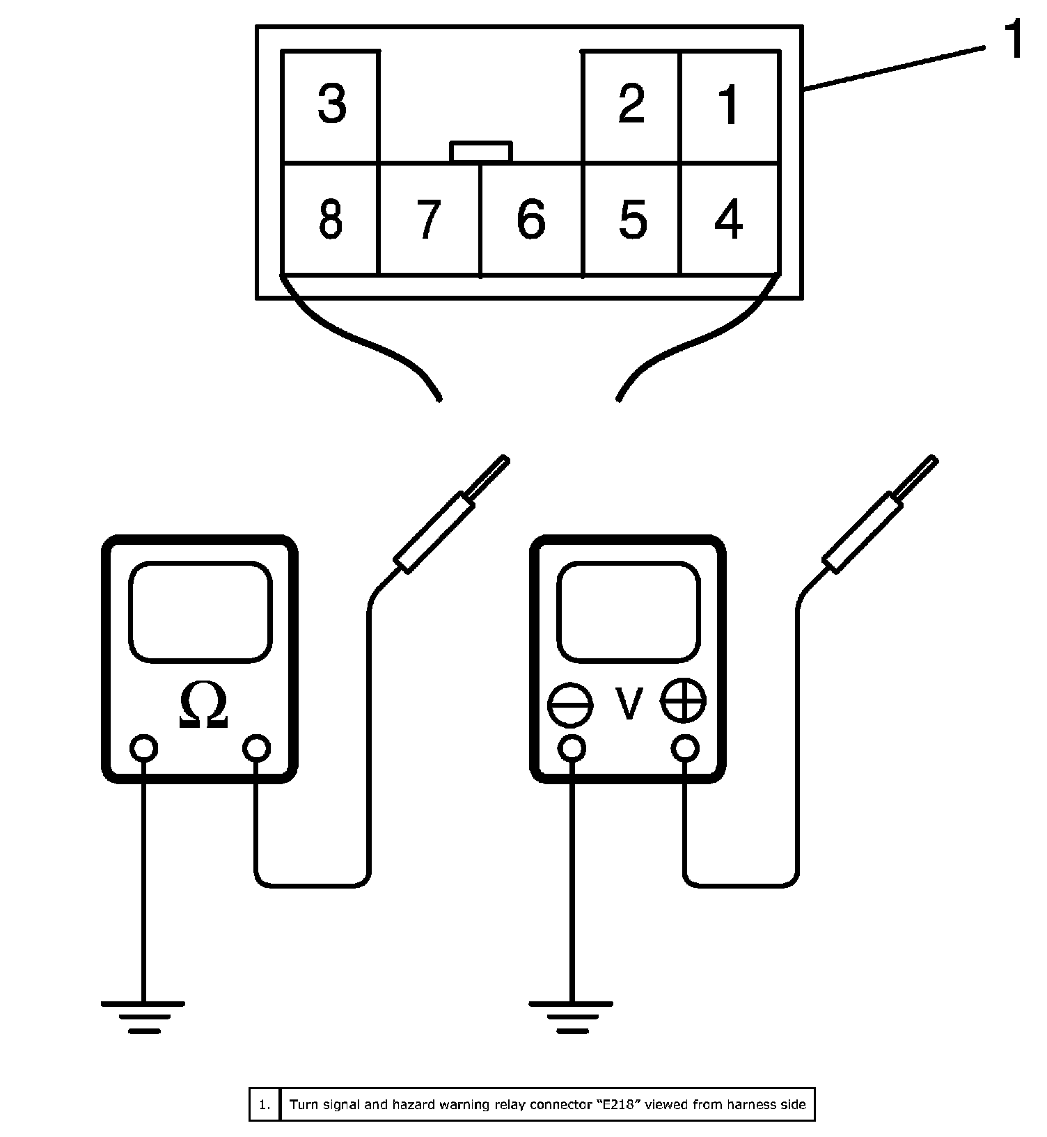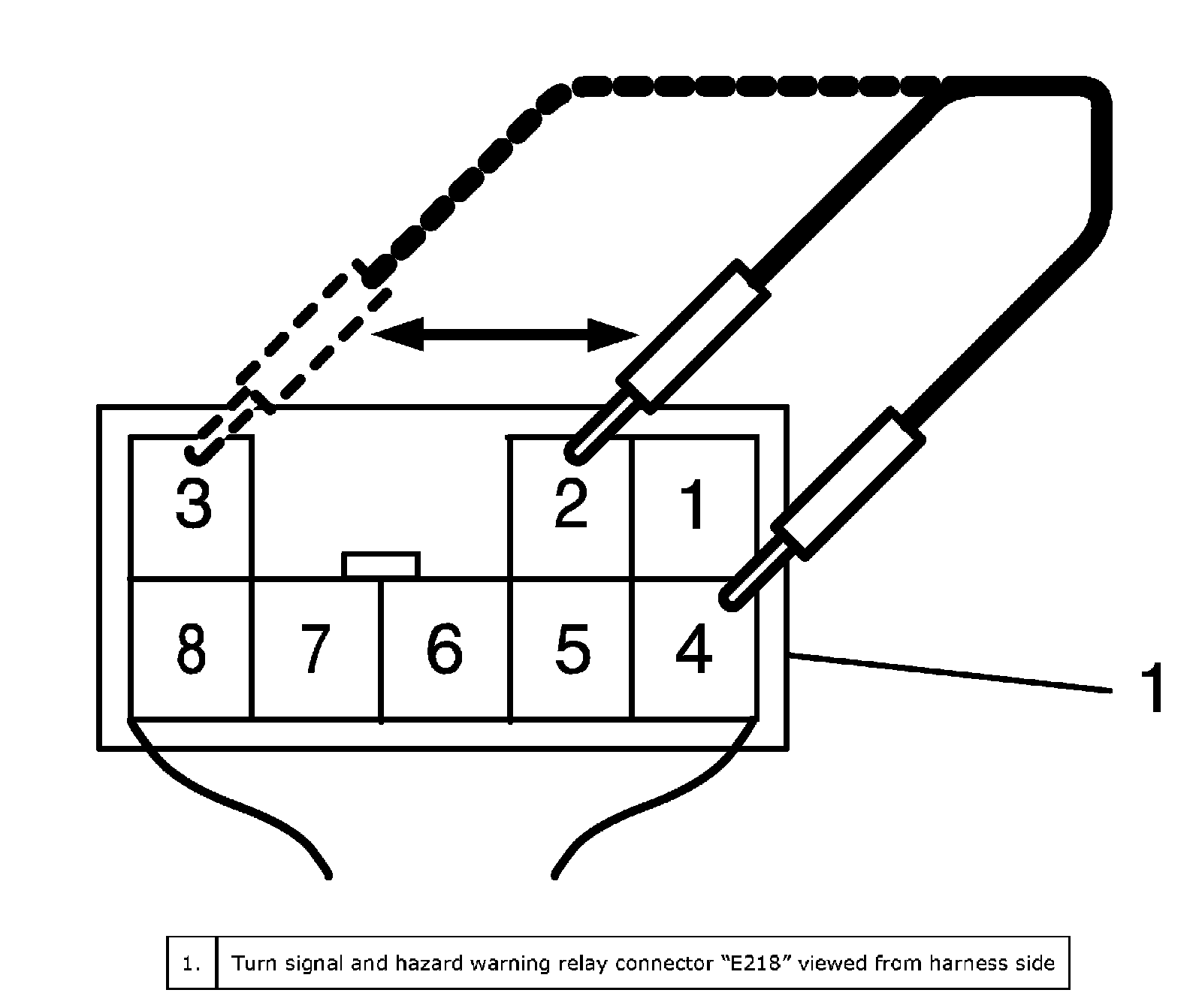 2. Disconnect turn signal and hazard warning relay (1) connector "E218".