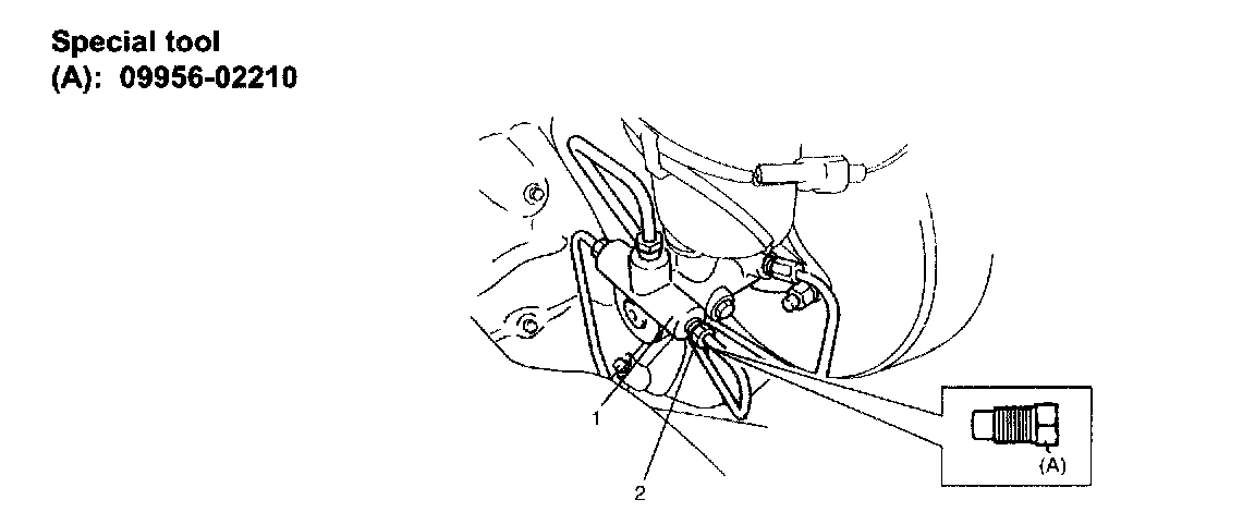 ^ For brake with bleeder plug (thread diameter: 10 mm), install special tool (A) (fluid pressure gauge).