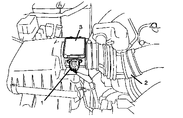 2. Remove air cleaner outlet hose (2) from throttle body and MAF sensor (3).