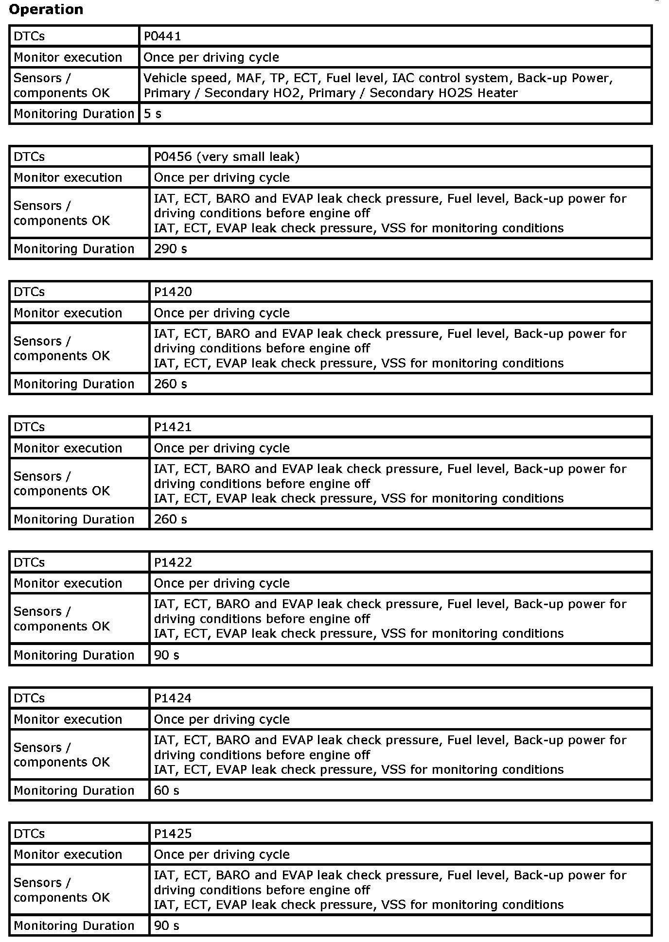 OBD System Description - EVAP Control System MonitorSystem Description / Monitoring Procedure