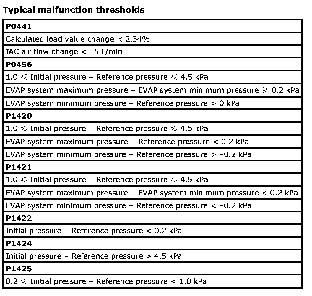 Typical Malfunction Thresholds: