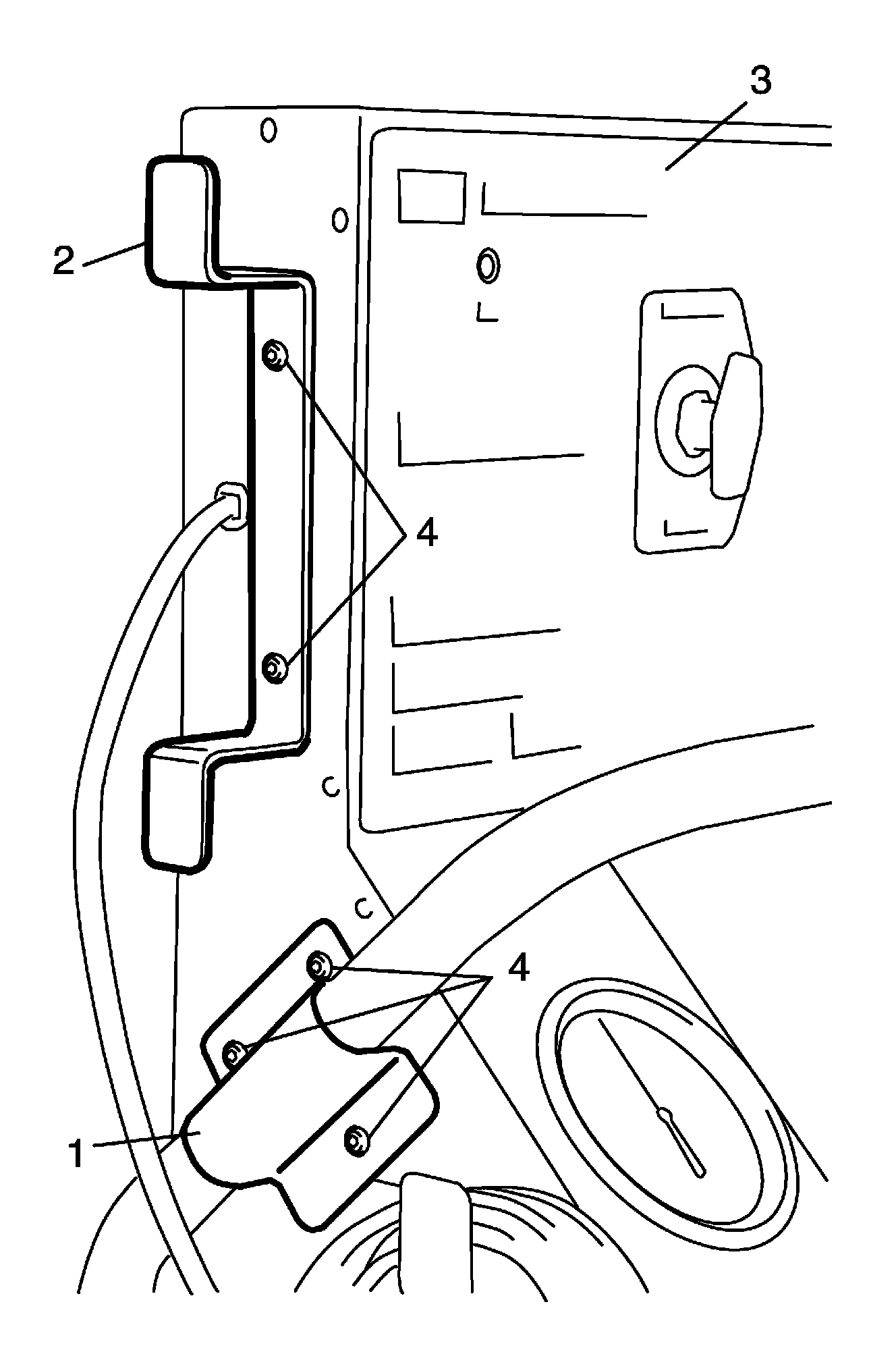3. Install handlebar brackets (1) on the right and left side and the remote switch cord wrap (2) to the tester (3) by using the hexagon screws (4).