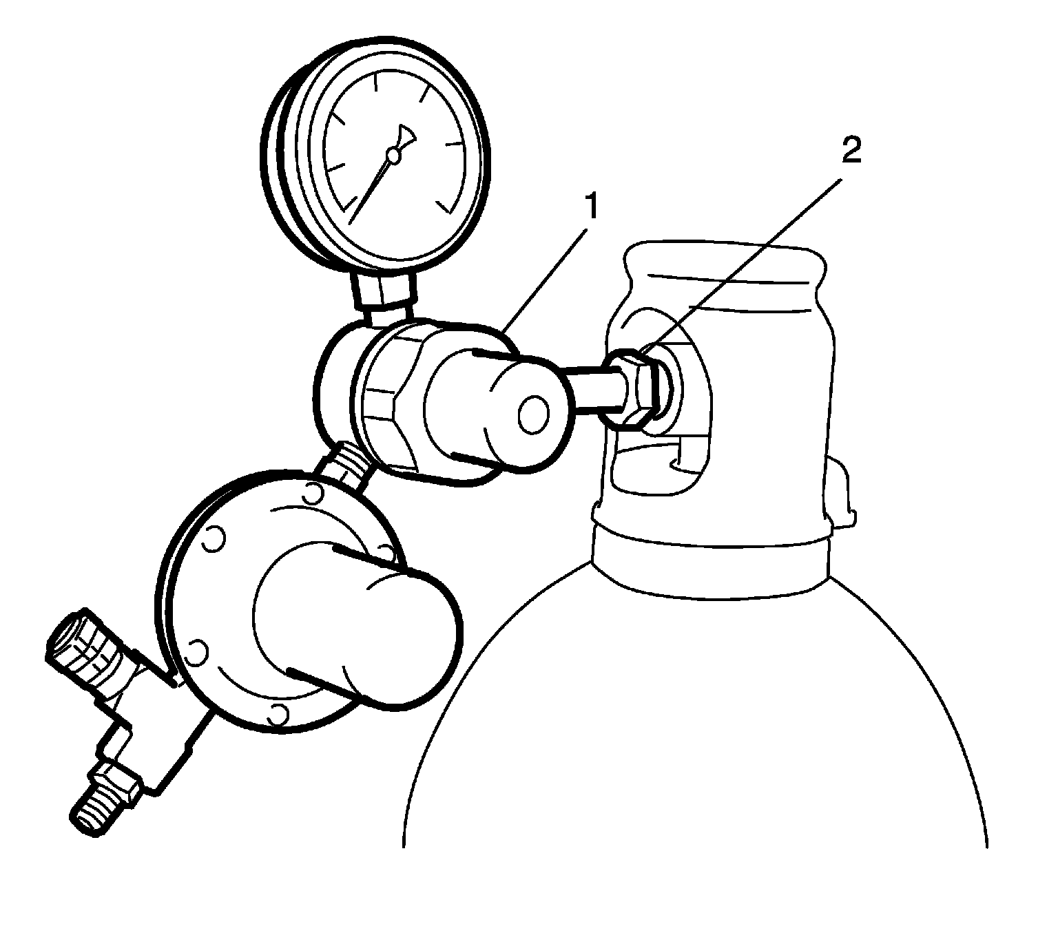 6. Install the pressure regulator (1) to the nitrogen tank.