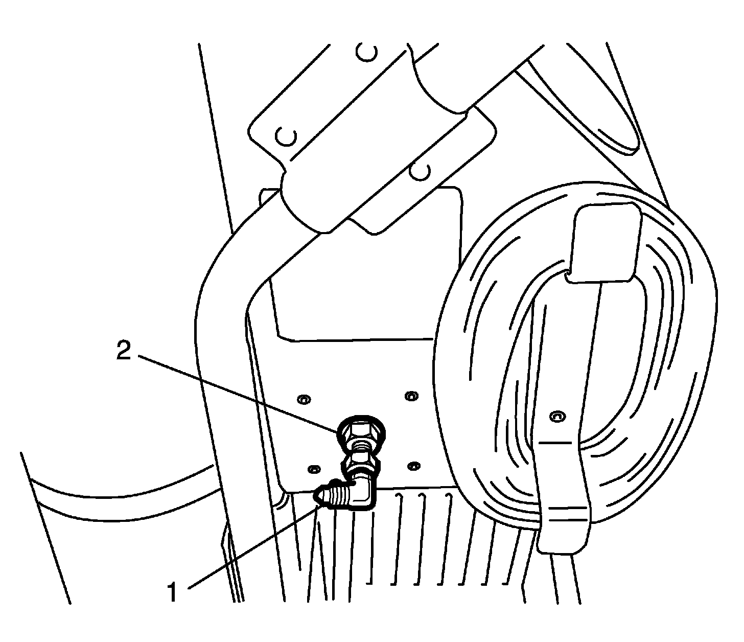 8. Install the 90 ° adapter (1) onto the nitrogen inlet (2) on the left side of the tester.