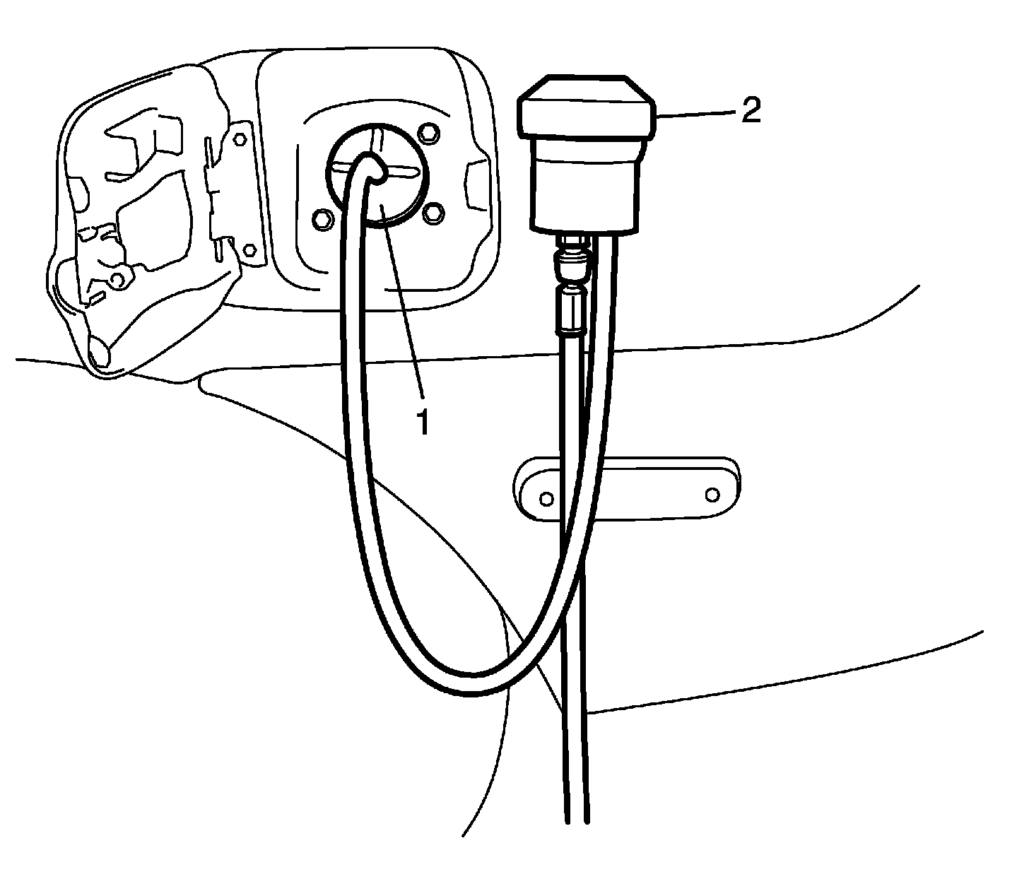 7. Connect the nitrogen/smoke hose onto the fuel cap adapter (1).