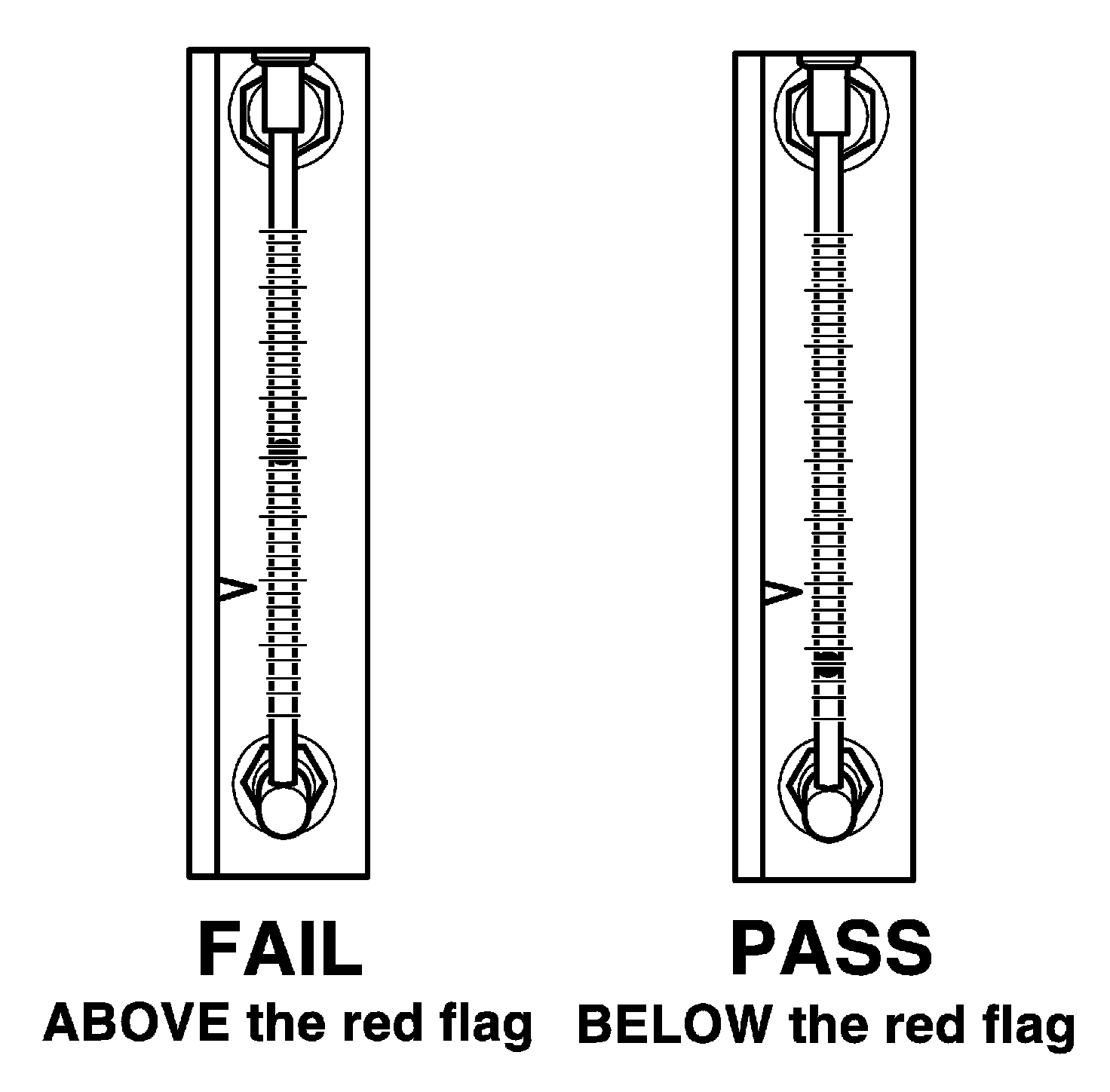 a. If indicator floats above the red flag, the result is UNACCEPTABLE. Locate and repair a leak.