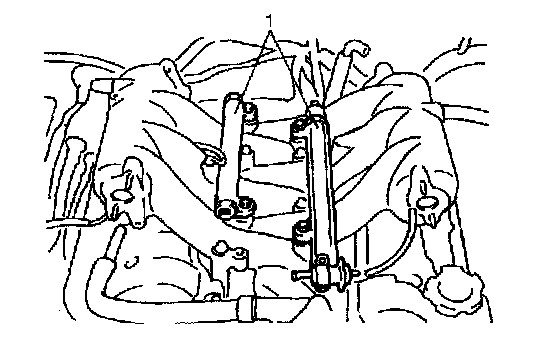 7. Remove delivery pipes (1) (right and left) from intake manifold.