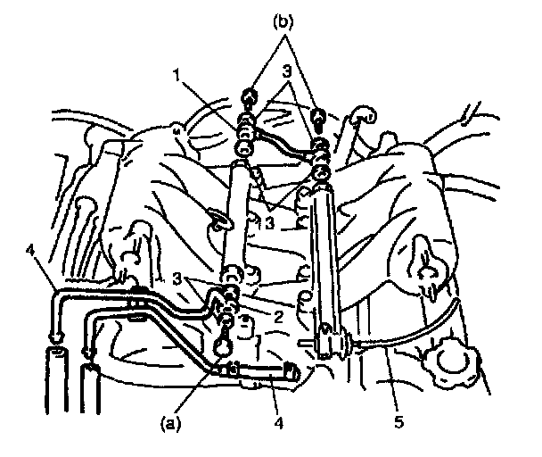 4. Disconnect vacuum hose (4) and fuel return hose from fuel pressure regulator (5).