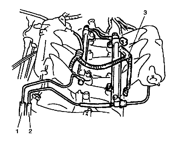 3. Disconnect fuel feed hose (1) and fuel return hose (2).
