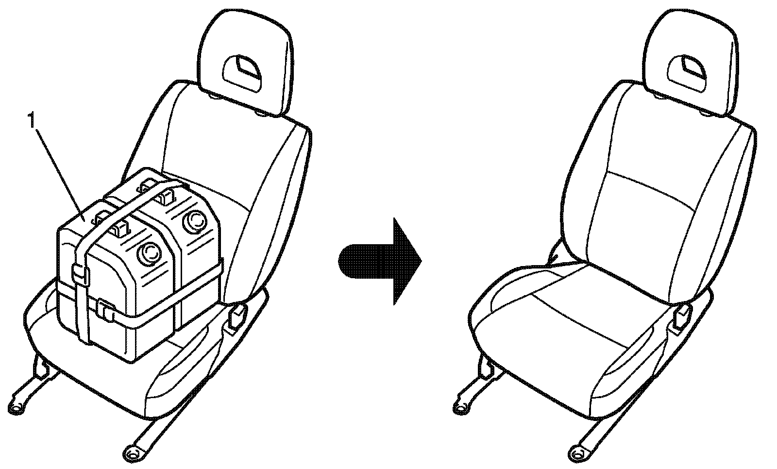 a. Place 40 kg (88.2 lb) weight (1) on passenger seat cushion and record each weight sensor load value.