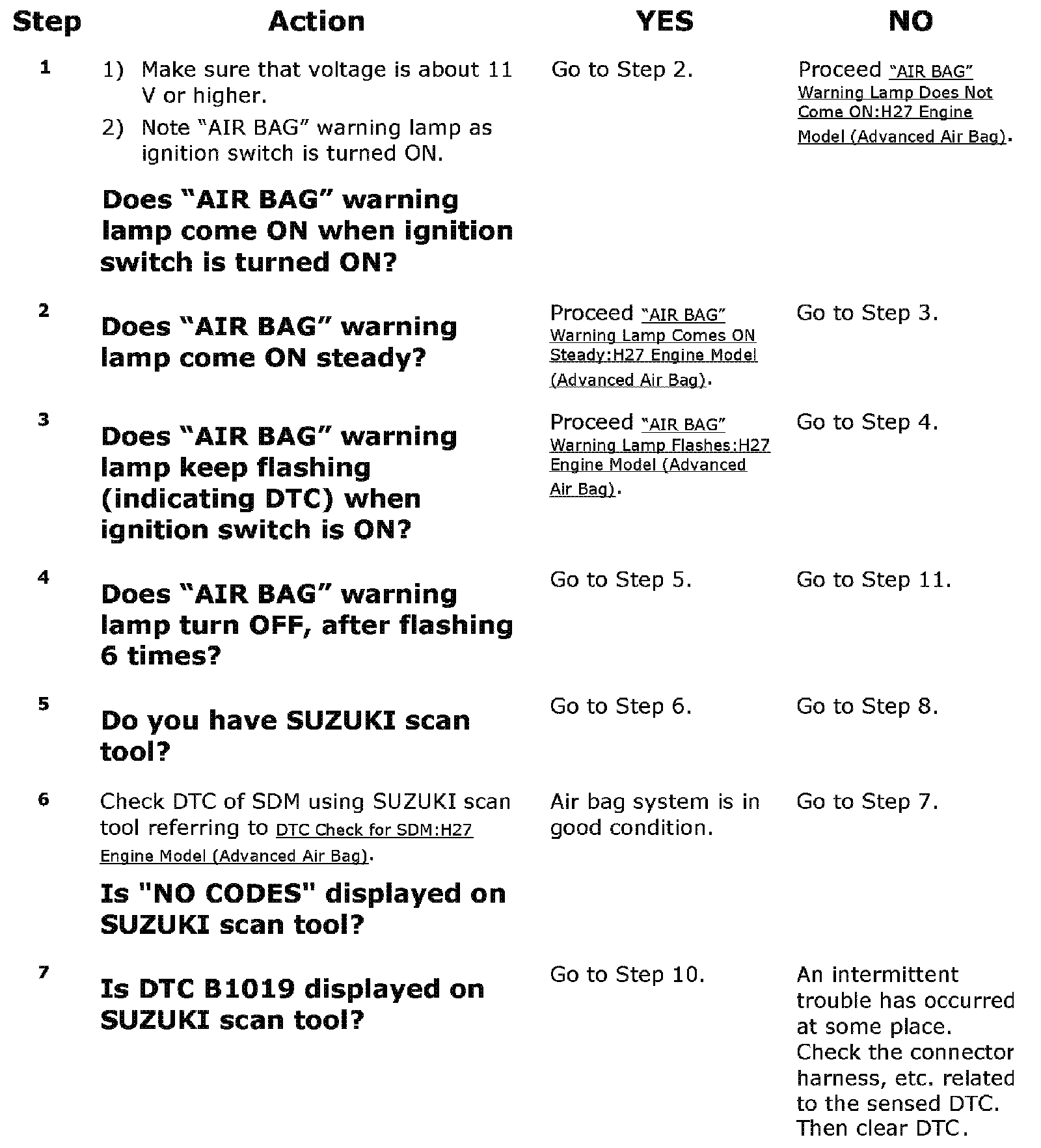 Step 1: Check that "AIR BAG" warning lamp lights.