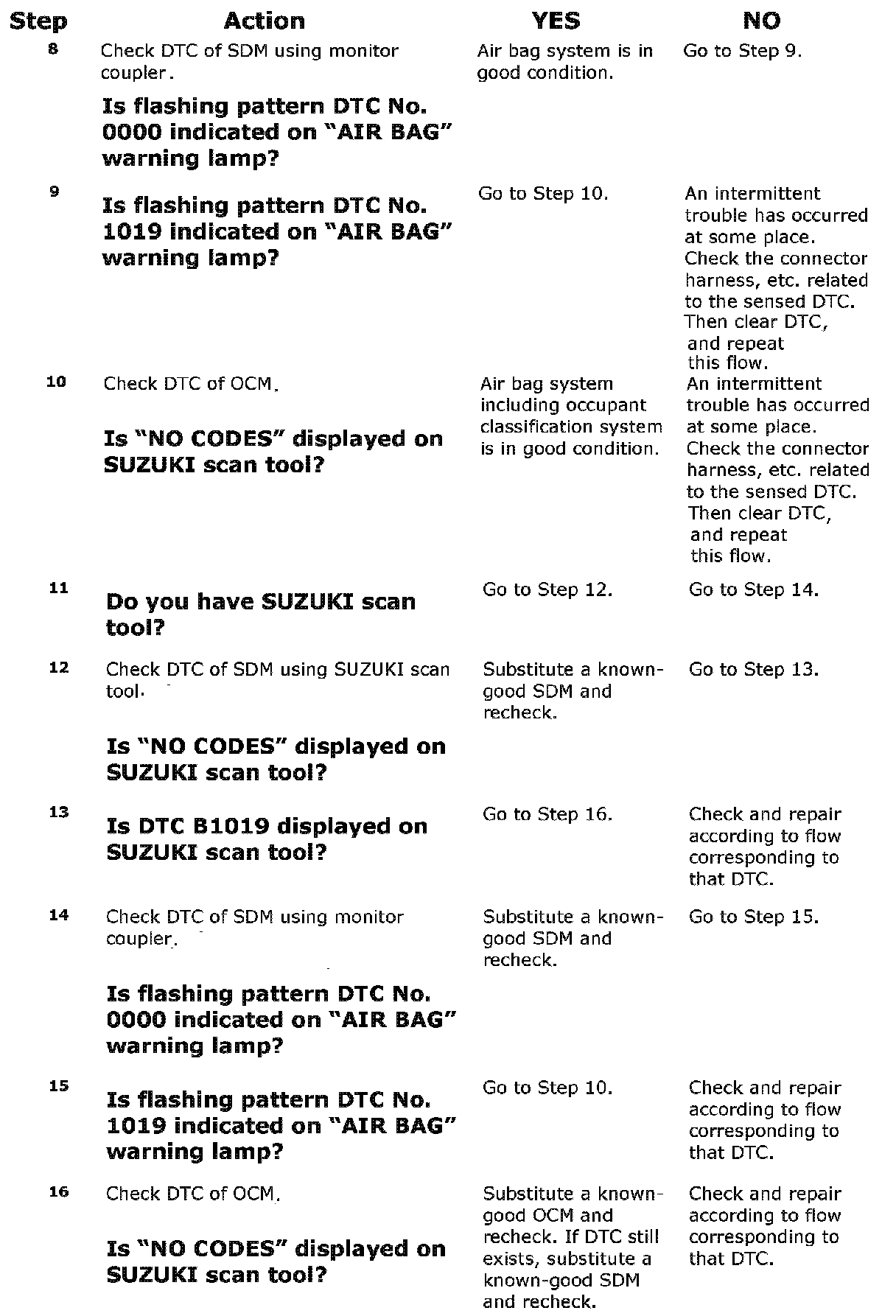 Step 13: Check that current code(s) is in SDM. (using SUZUKI scan tool)