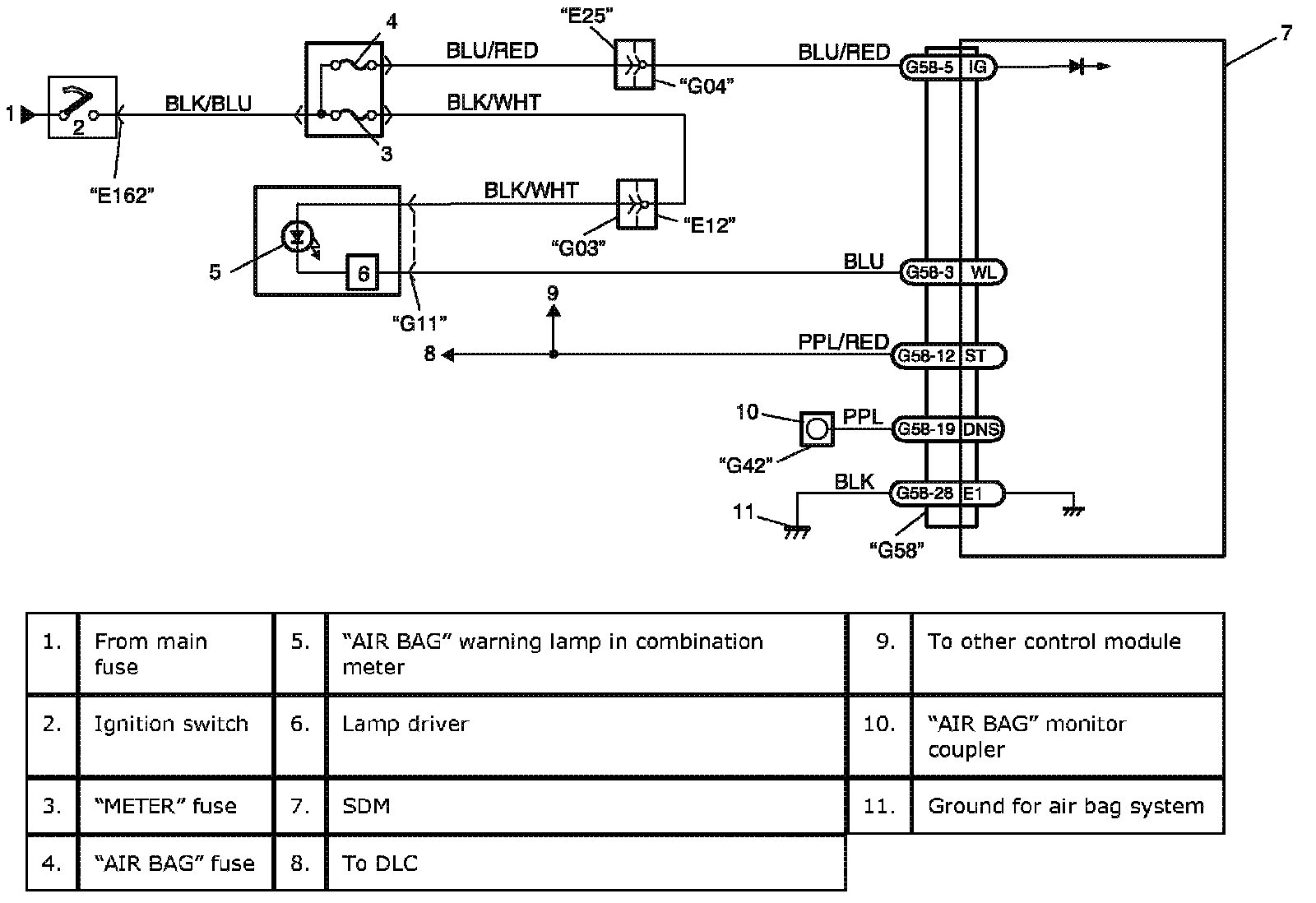 "AIR BAG" Warning Lamp Cannot Indicate Flashing Pattern of DTCWiring Diagram: